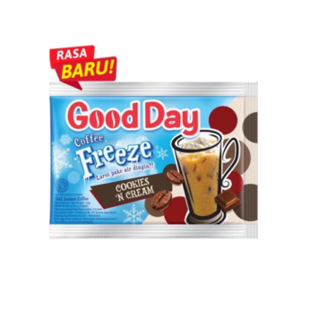 Goodday Freeze Cookies ‘N Cream – sensasi creamy manis dengan rasa cookies yang unik! Bisa diseduh hangat dengan air panas hanya Rp5.000, atau lebih segar dengan es seharga Rp6.000. Pas banget buat mood booster harian Anda.
